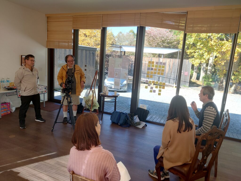 かるいざわ ざわざわの取材班メンバーが、浅麓コミカレの活動の様子を撮影に来てくださいました。プログラムの進行の一部を撮影に充てて頂いたのと、インタビューに対しては、少し緊張も、カメラに向かい全員が一言感想を伝え終了。思いがけない、楽しい時間になりました。